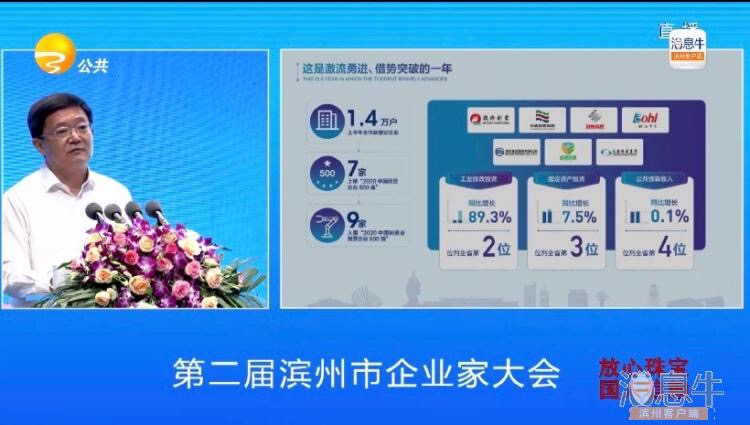 為推動(dòng)全市經(jīng)濟(jì)高質(zhì)量發(fā)展,充分調(diào)動(dòng)廣大企業(yè)和各級(jí)各有關(guān)部門干事創(chuàng)業(yè)的積極性,凝聚各方面創(chuàng)新實(shí)干的強(qiáng)大合力,2020年9月25日上午,第二屆濱州市企業(yè)家大會(huì)于渤海先進(jìn)技術(shù)研究院主報(bào)告廳隆重召開(kāi)。